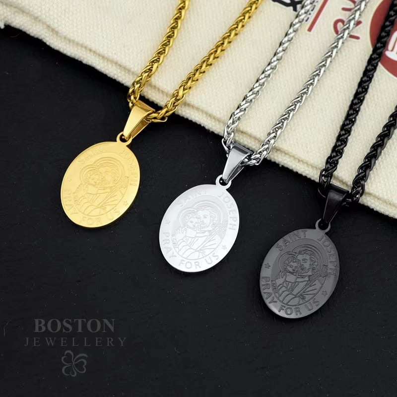 CZARNY ŁAŃCUSZEK Z MEDALIKIEM ZE ŚWIĘTYM JÓZEFEM SPLOT KRÓLEWSKI PREMIUM BOSTON JEWELLERY