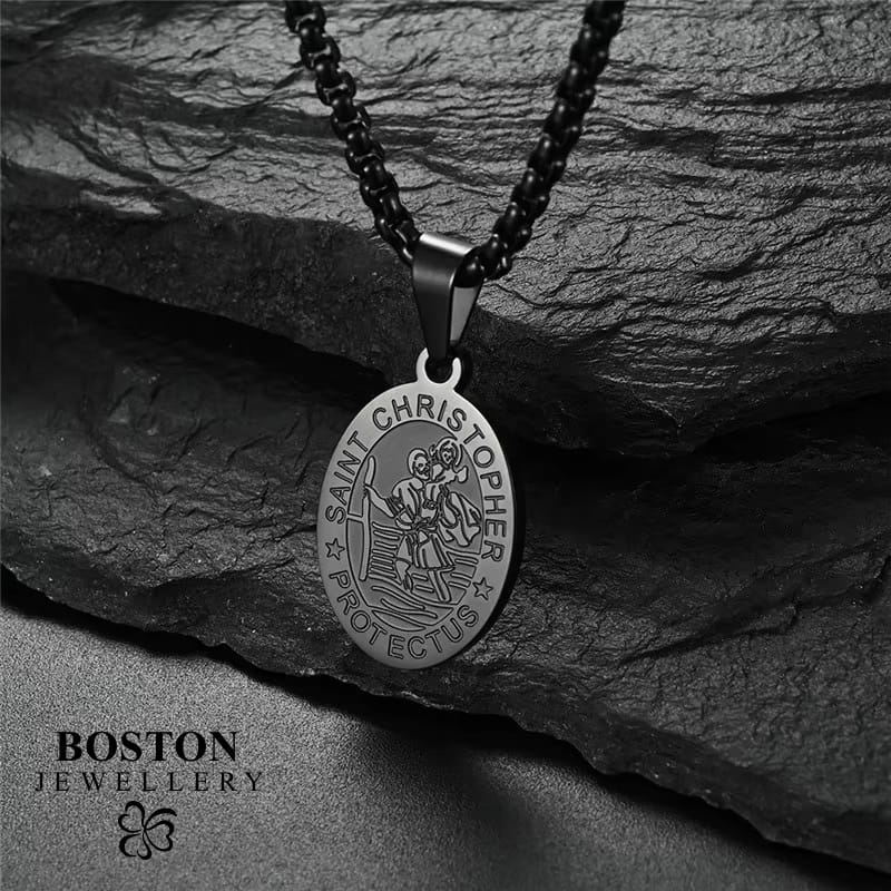 CZARNY ŁAŃCUSZEK Z MEDALIKIEM ZE ŚWIĘTYM KRZYSZTOFEM SPLOT KRÓLEWSKI 60CM BOSTON JEWELLERY