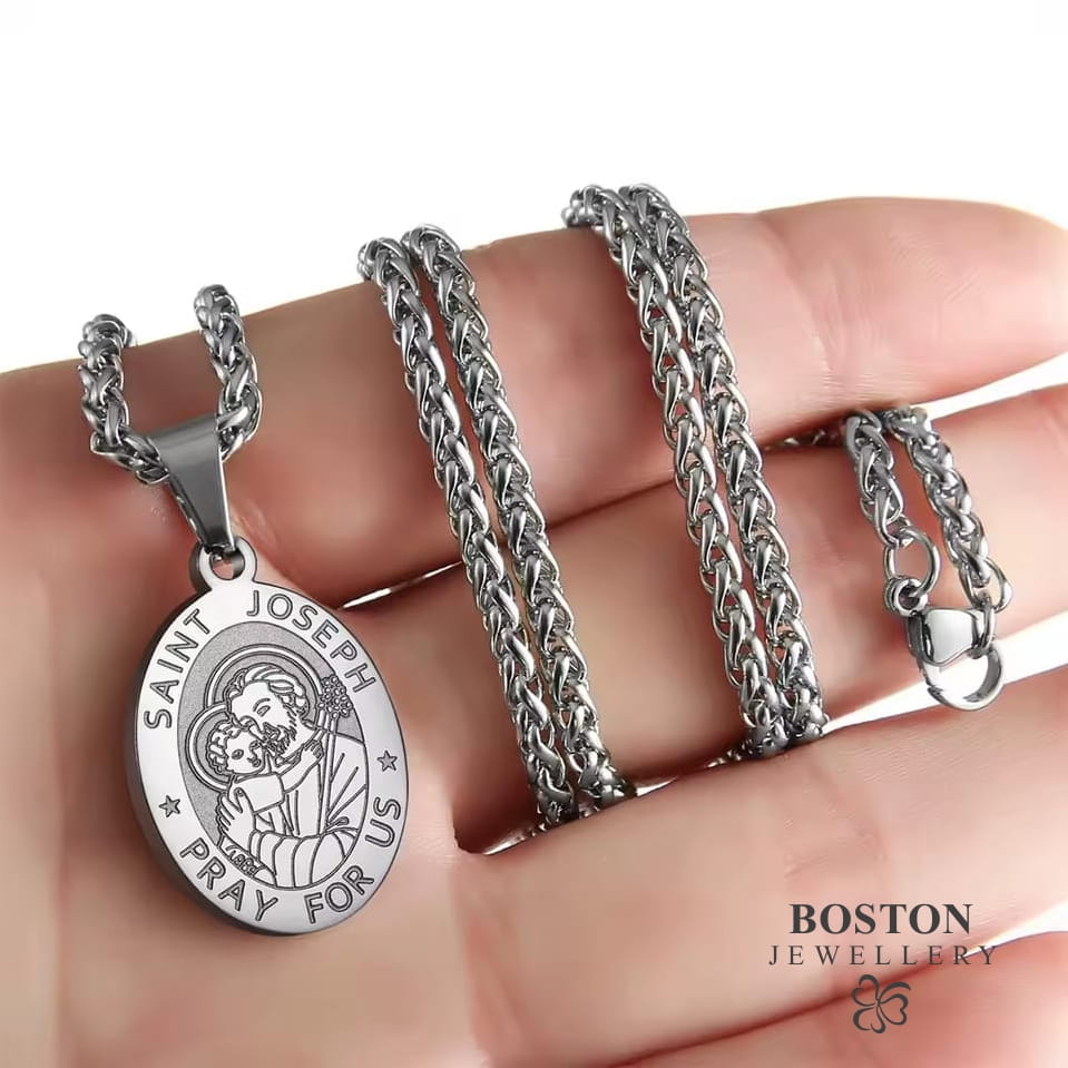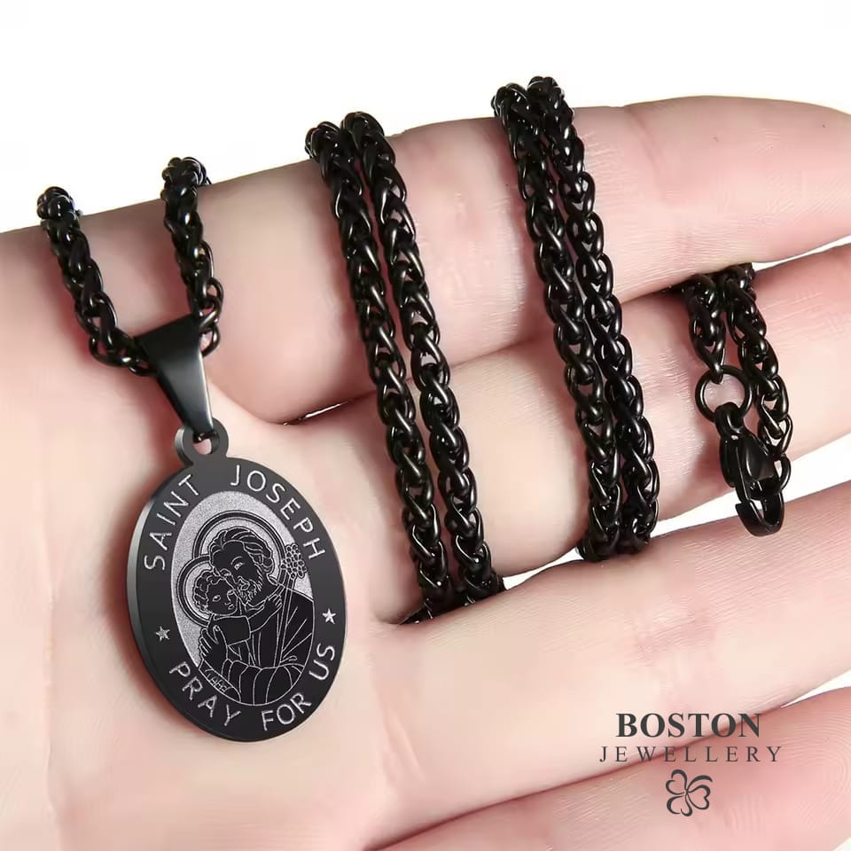 CZARNY MEDALIK ŚWIĘTY JÓZEF Z DZIECIĄTKIEM JEZUS Z ŁAŃCUSZKIEM KRÓLEWSKIM PREMIUM