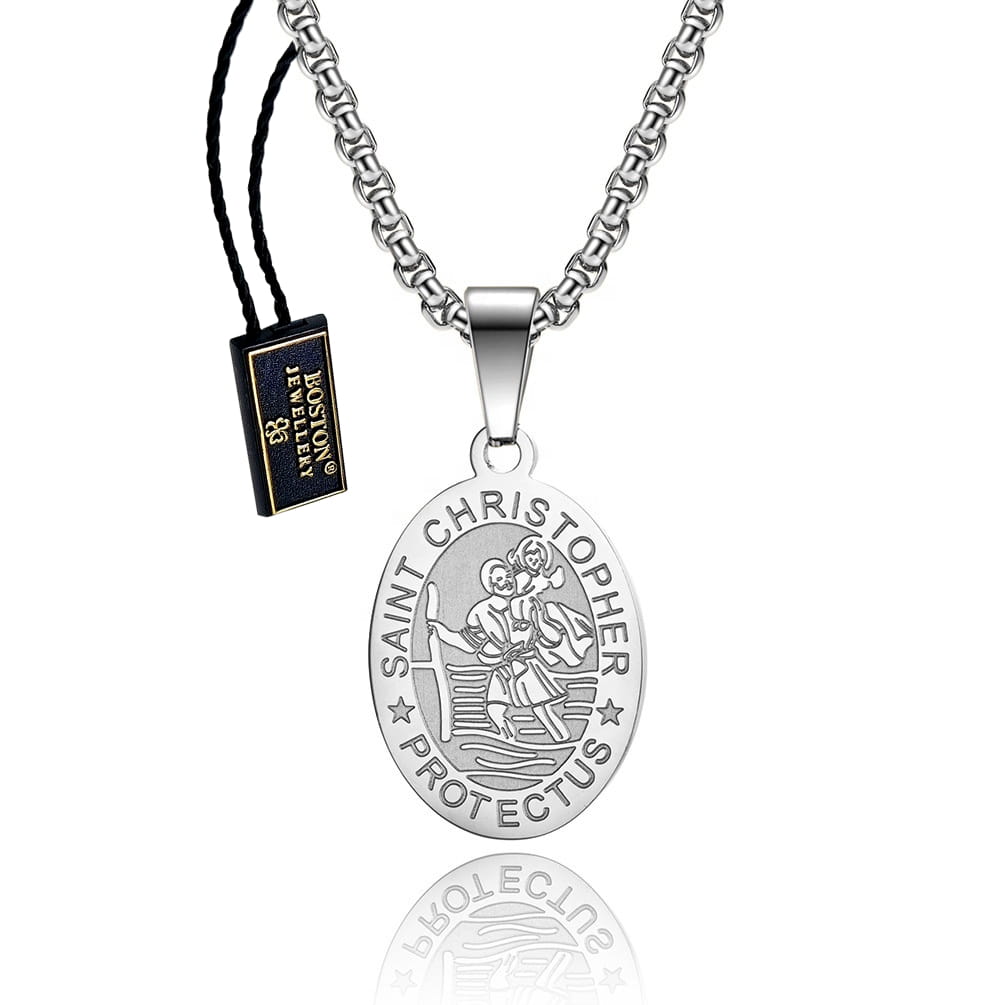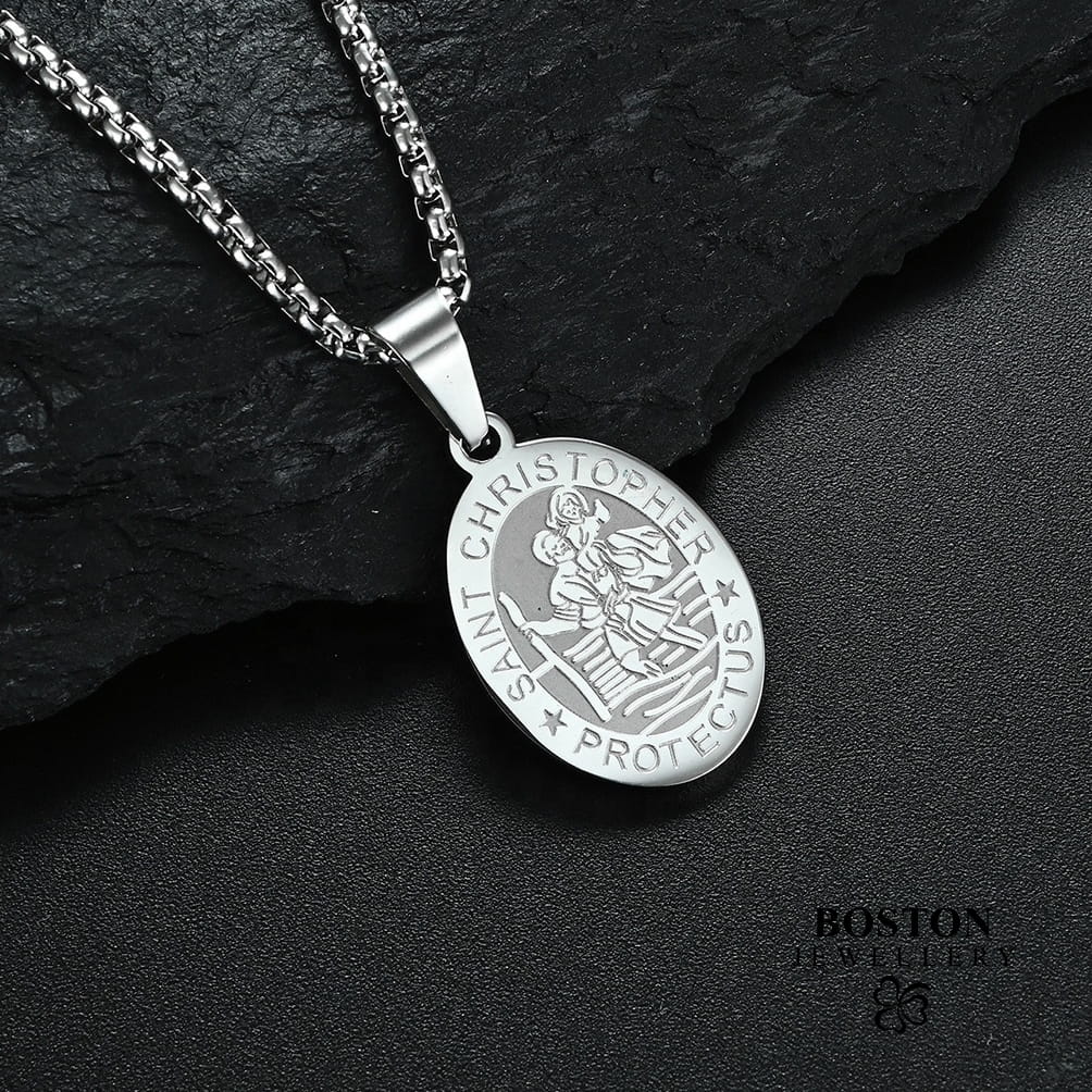 CZARNY MEDALIK ZE ŚWIĘTYM KRZYSZTOFEM Z ŁAŃCUSZKIEM 60 CM PATRON KIEROWCÓW I PODRÓŻUJĄCYCH