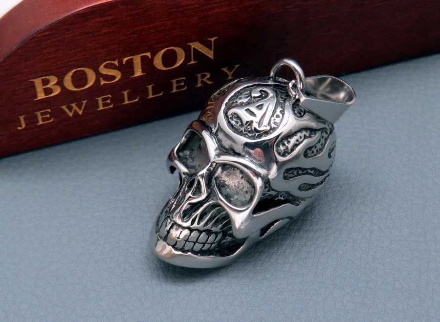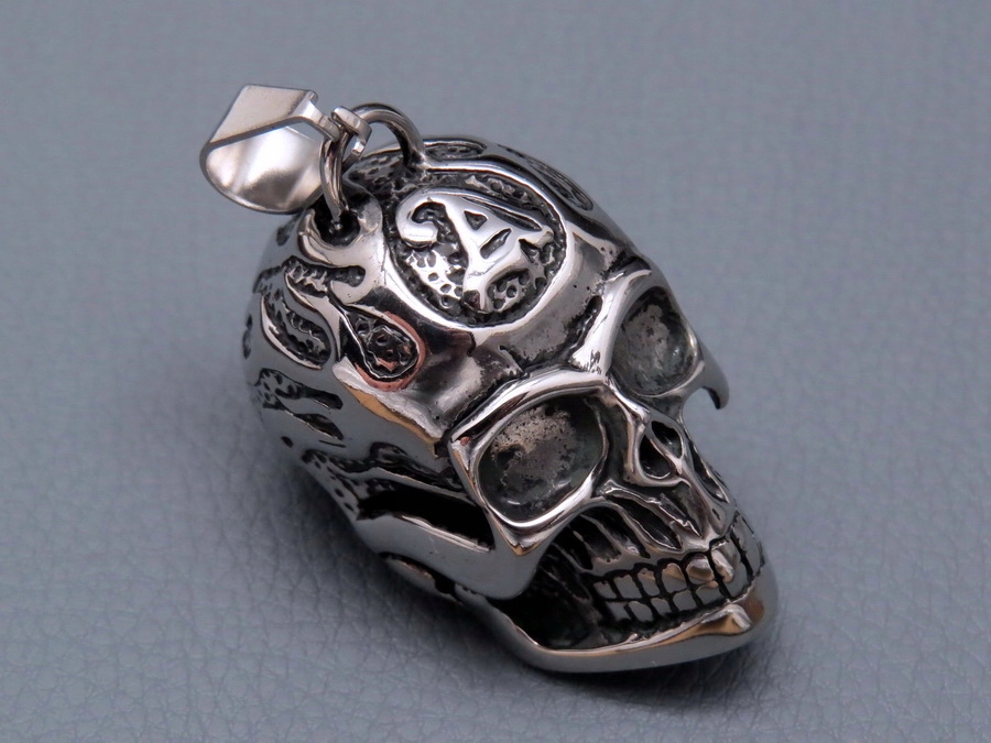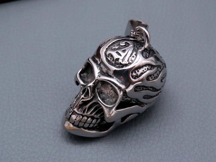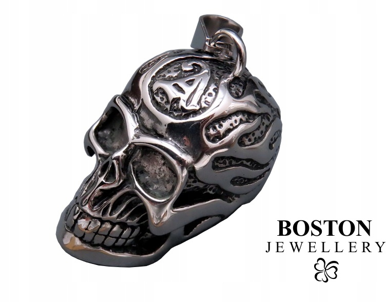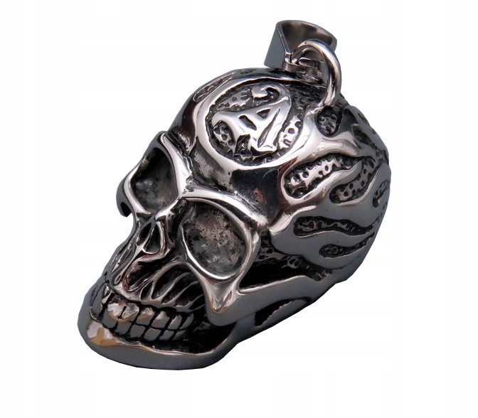 Zawieszka - trupia czaszka posiada bardzo autentyczny wygląd dzięki dużej precyzji wykonania. Posiada również bardzo eleganckie i solidne ucho zamiast zwykłego kółeczka.