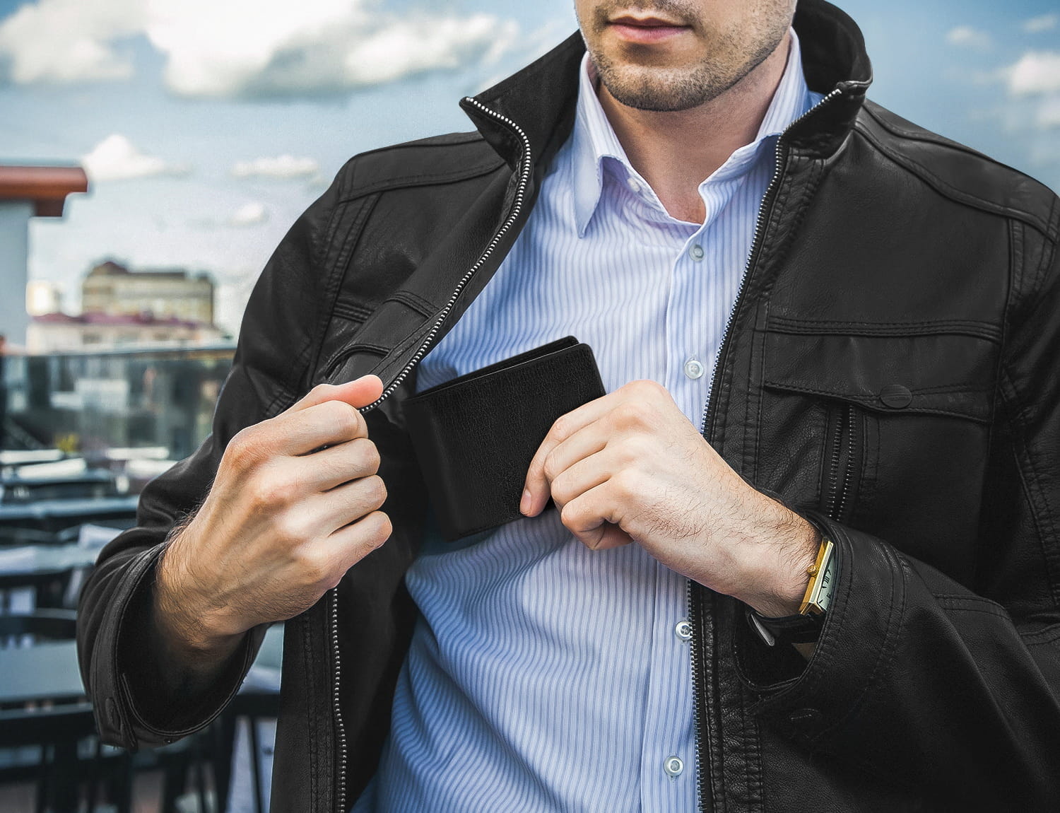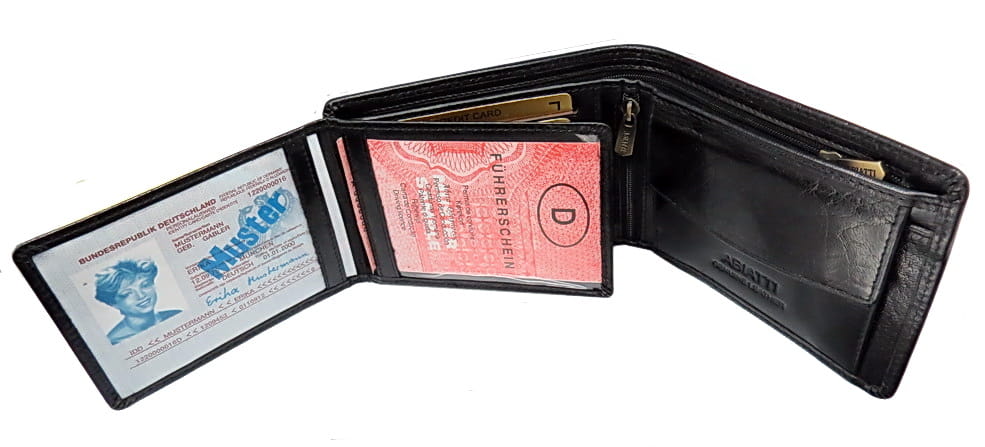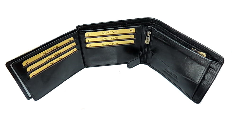 Portfel z pełną ochroną RFID. TWOJE PIENIĄDZE I DANE SĄ BEZPIECZNE !!! W tym modelu zastosowana została specjalna membrana RFID (Radio-Frequency Identification), która chroni karty zbliżeniowe przed kradzieżą pieniędzy oraz inne dokumenty przed nieautoryzowanym odczytem danych. Wszyta pomiędzy skórą naturalną, a podszewką membrana RFID uniemożliwia odczyt danych za pomocą specjalnych czytników wykorzystywanych przez złodziei. Membrana blokuje sygnał i czytnik nie wykrywa kart umieszczonych w portfelu.