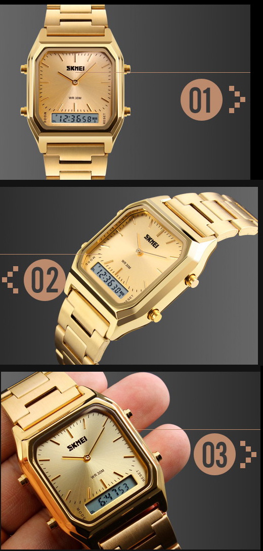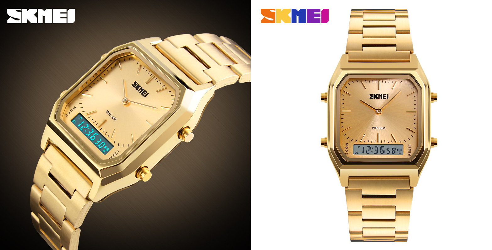 W ORYGINALNYCH ZEGARKACH NOWEJ SERII SKMEI ZŁOTE ELEMENTY TO BARDZO ELEGANCKIE I AUTENTYCZNE ZŁOCENIE !!!