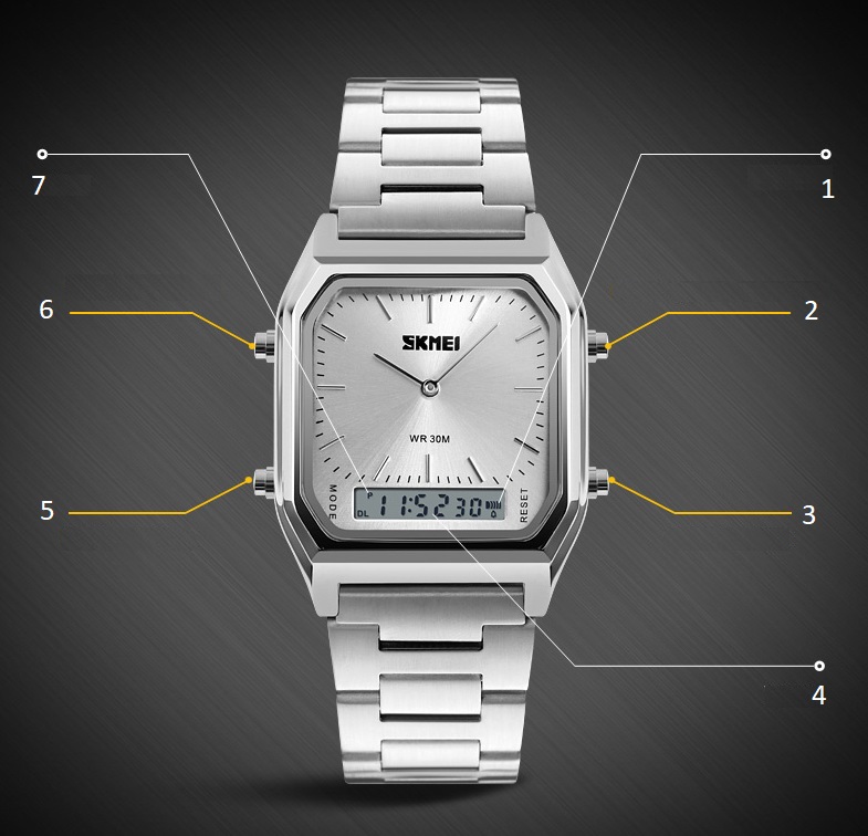SKMEI to jeden z największych koncernów produkujących szeroką gamę zegarków w zaawansowanych technologicznie fabrykach w oparciu o innowacyjne rozwiązania oraz najnowsze zdobycze naukowe. Produkty te charakteryzuje niesłychana wręcz precyzja wykonania - każdy pojedynczy element to prawdziwe arcydzieło !!! Spasowanie elementów oraz wykończenie są bardzo solidne, a całość wygląda imponująco!