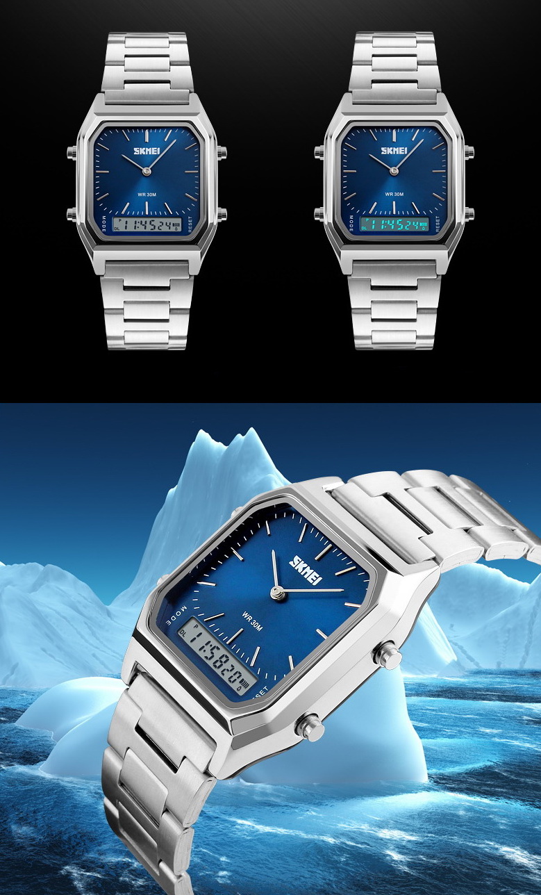 Oprócz elegancji zegarek ten odznacza się również praktycznością i trwałością. W zegarku zastosowano niemieckie szkło mineralne HIGH HARDNESS GLASS - wysoka przezroczystość oraz odporność na zarysowania. Model ten posiada także podświetlany cyfrowy wyświetlacz z wieloma funkcjami.