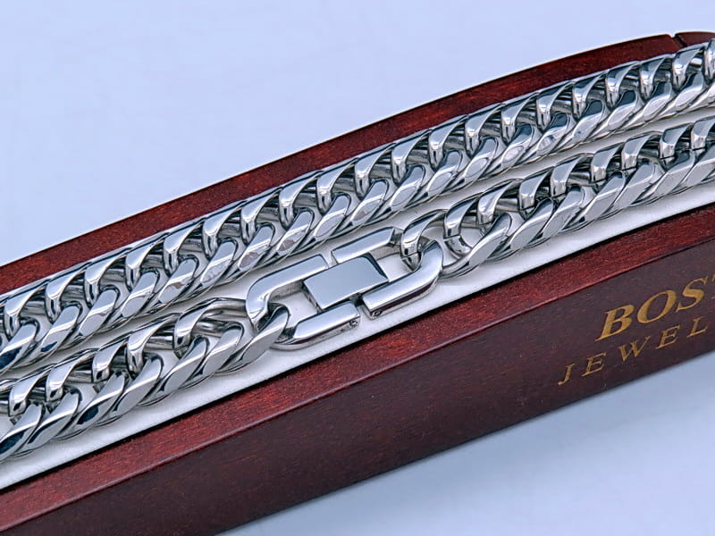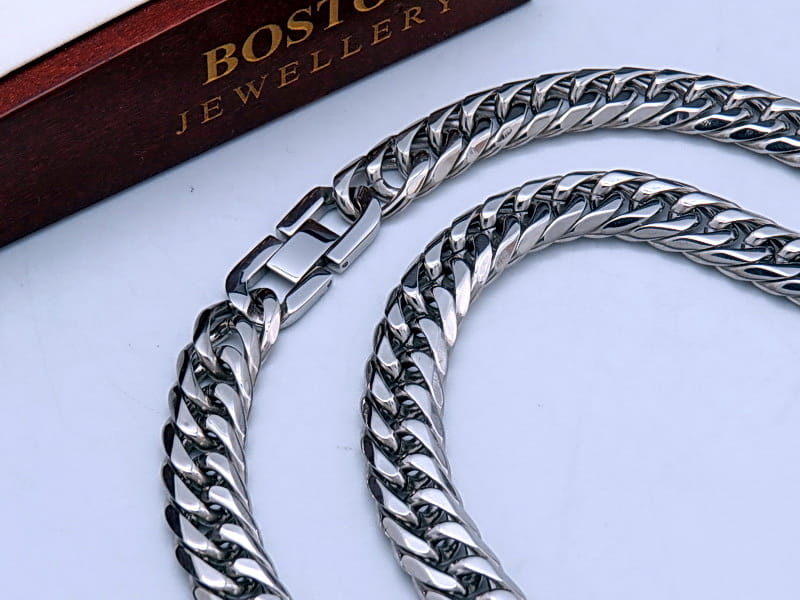 W ostatnich latach furorę robi biżuteria wykonana ze stali szlachetnej 316L. Dlaczego tak się dzieje? Dlaczego wypiera z rynku biżuterię srebrną? Powodów jest wiele. Najważniejszy to duża odporność na warunki atmosferyczne, stal szlachetna, zwana inaczej chirurgiczną, jubilerską lub nierdzewną jest gatunkiem stali najbardziej odpornym na korozję, nie rdzewieje, nie śniedzieje, a przez to nie wymaga szczególnego traktowania. Nie jest konieczne jej czyszczenie odpowiednimi szmatkami jak to jest w przypadku złota czy srebra. Stal jest również hipoalergiczna, tzn. nie powoduje reakcji uczuleniowych ze względu na prawie zerowe uwalnianie niklu do organizmu, stąd stal 316L jest szeroko używana w medycynie oraz przemyśle spożywczym. Stosowana jest również w piercingu – do przekłuwania ciała. Stal konkuruje nad innymi metalami szlachetnymi swoją ceną, jest ona tańsza od tytanu, wolframu czy złota. Ze względu na swe dobre właściwości znalazła zastosowanie właśnie w tworzeniu biżuterii dla mężczyzn – nie łamie się, jest wytrzymała, nie rdzewieje, nie kruszy się, nie powoduje alergii, nie wymaga polerowania, a jednocześnie można z niej uzyskać przeróżne wzory, motywy, zarówno poprzez odlewanie jak i cięcie czy grawerowanie.
