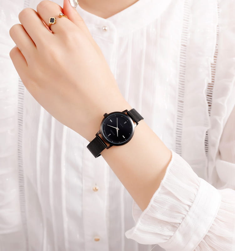 W zegarku został zastosowany JAPOŃSKI MECHANIZM KWARCOWY, którego charakteryzuje bardzo duża dokładność. Mechanizm ten zasilany jest wysokiej jakości JAPOŃSKĄ BATERIĄ, która zapewnia precyzyjną i stabilną pracę zegarka przez bardzo długi czas. Model ten posiada niewielką, zgrabną tarczę, która jest bardzo czytelna.