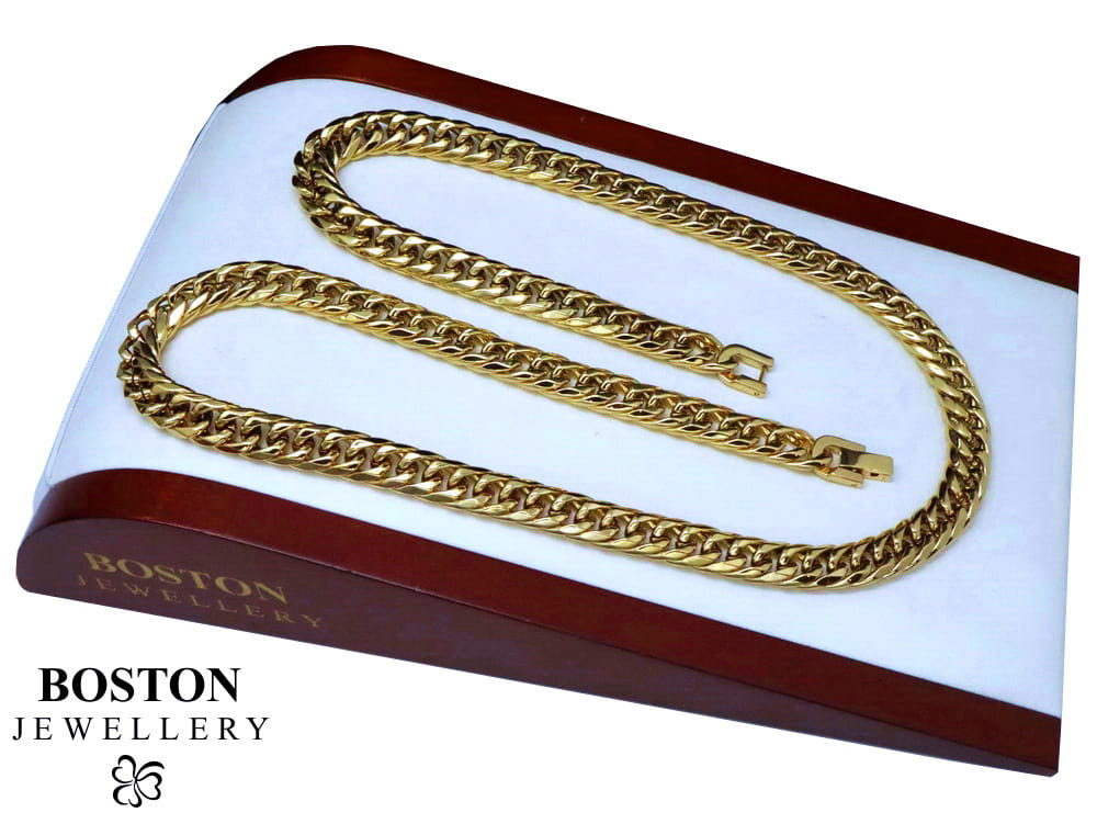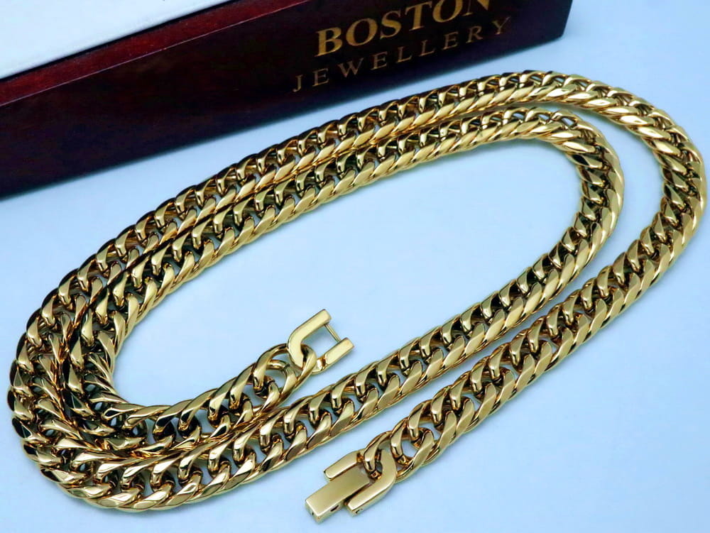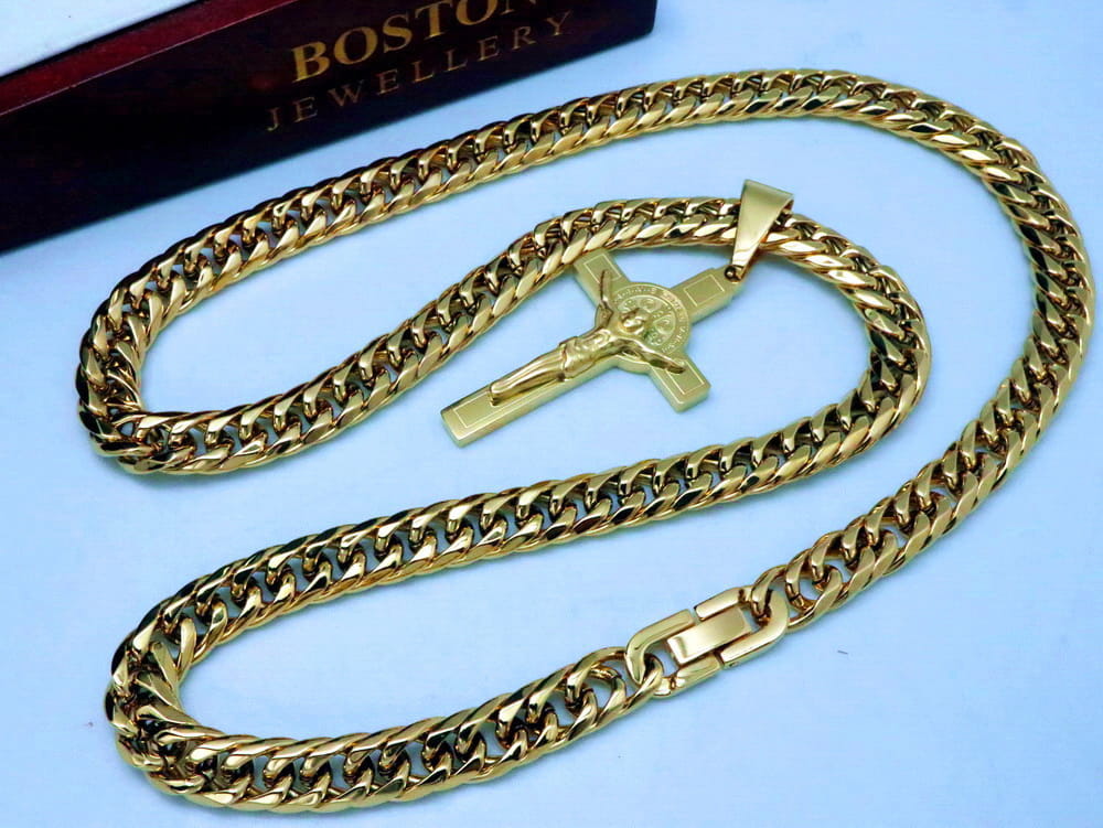 MASYWNY ZŁOTY ŁAŃCUSZEK Z KRZYŻYKIEM STAL CHIRURGICZNA 316L PREMIUM BOSTON JEWELLERY