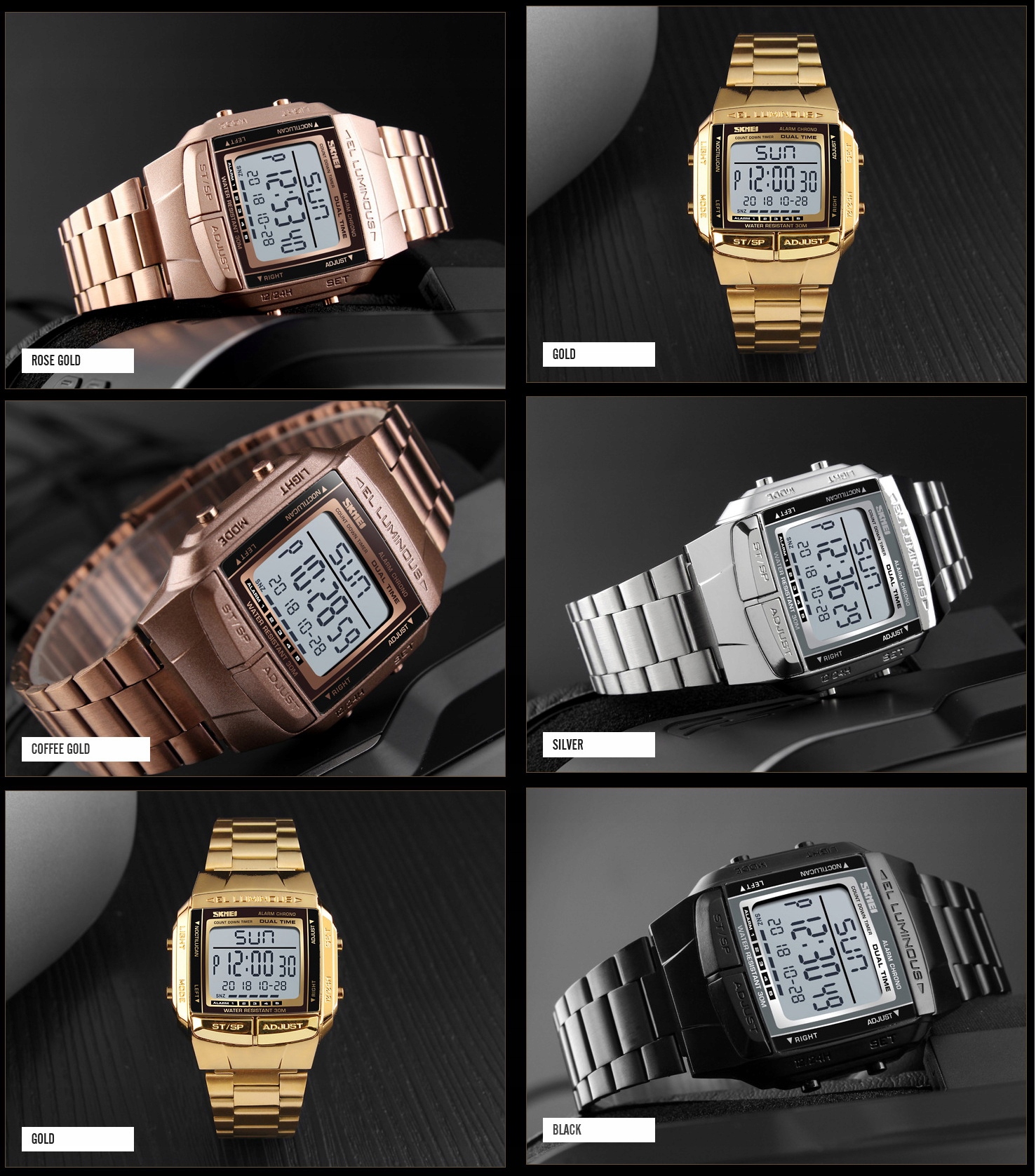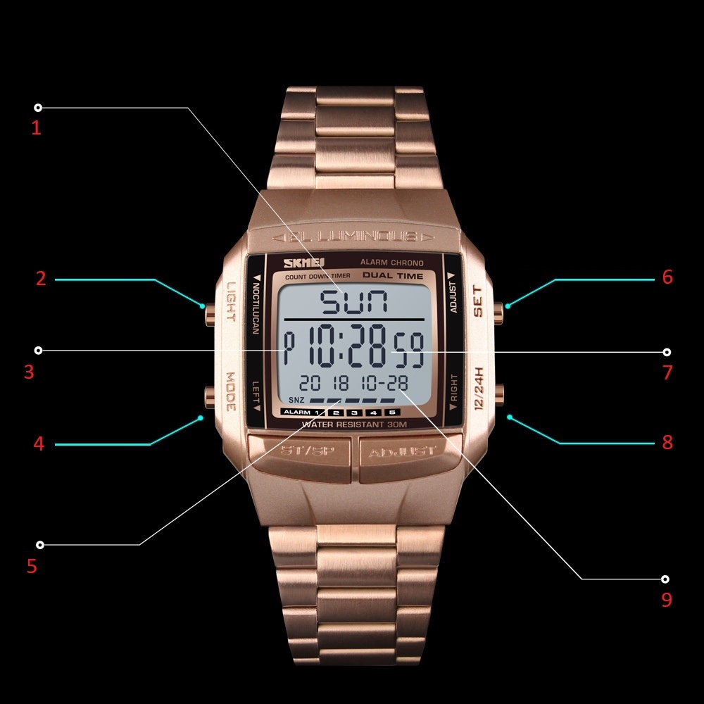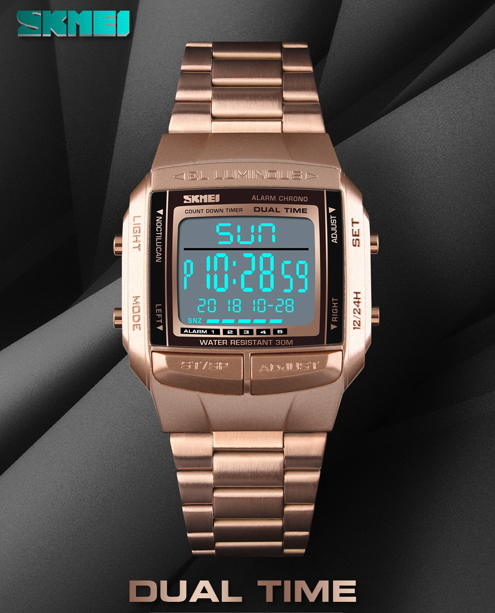 SKMEI to jeden z największych koncernów produkujących szeroką gamę zegarków w zaawansowanych technologicznie fabrykach w oparciu o innowacyjne rozwiązania oraz najnowsze zdobycze naukowe. Produkty te charakteryzuje niesłychana wręcz precyzja wykonania - każdy pojedynczy element to prawdziwe arcydzieło !!! Spasowanie elementów oraz wykończenie są bardzo solidne, a całość wygląda imponująco!