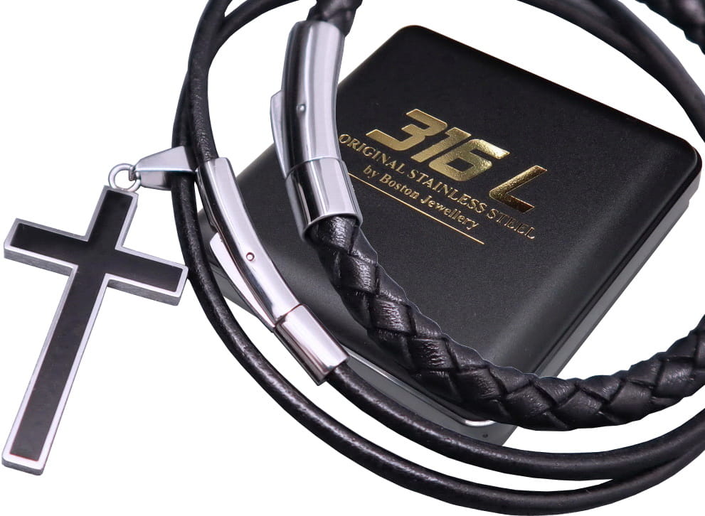 W tej ofercie prezentujemy elegancki zestaw: RZEMYK Z KRZYŻYKIEM + BRANSOLETKA wykonany z NAJWYŻSZEJ JAKOŚCI STALI CHIRURGICZNEJ 316L oraz bardzo wytrzymałej PRAWDZIWEJ skóry naturalnej klasy PREMIUM.