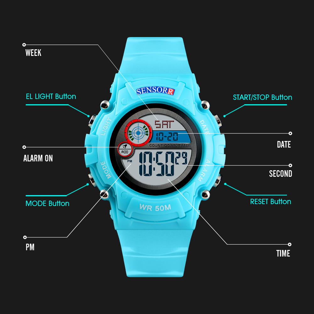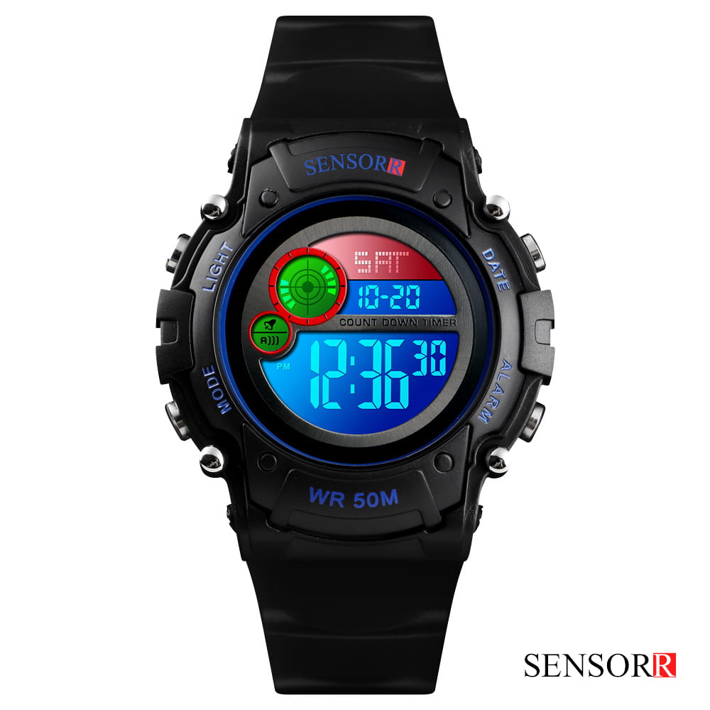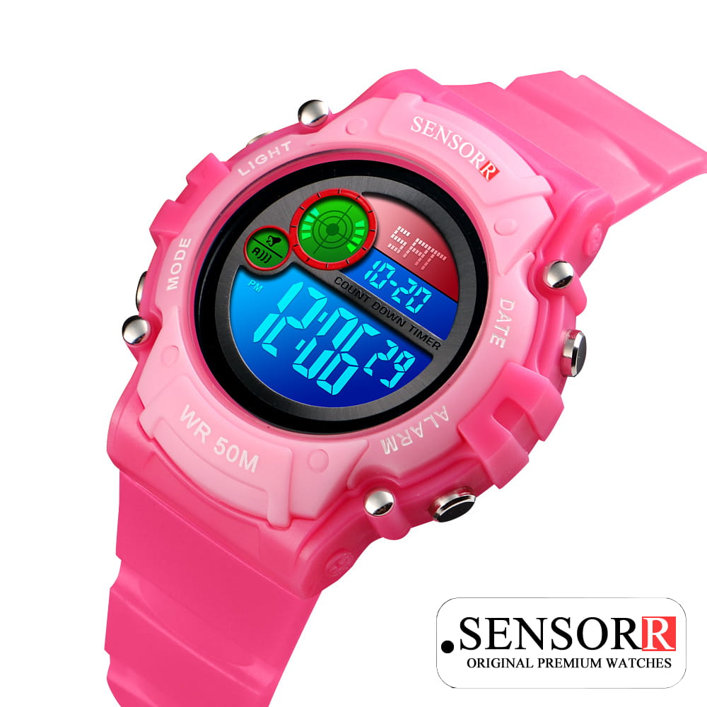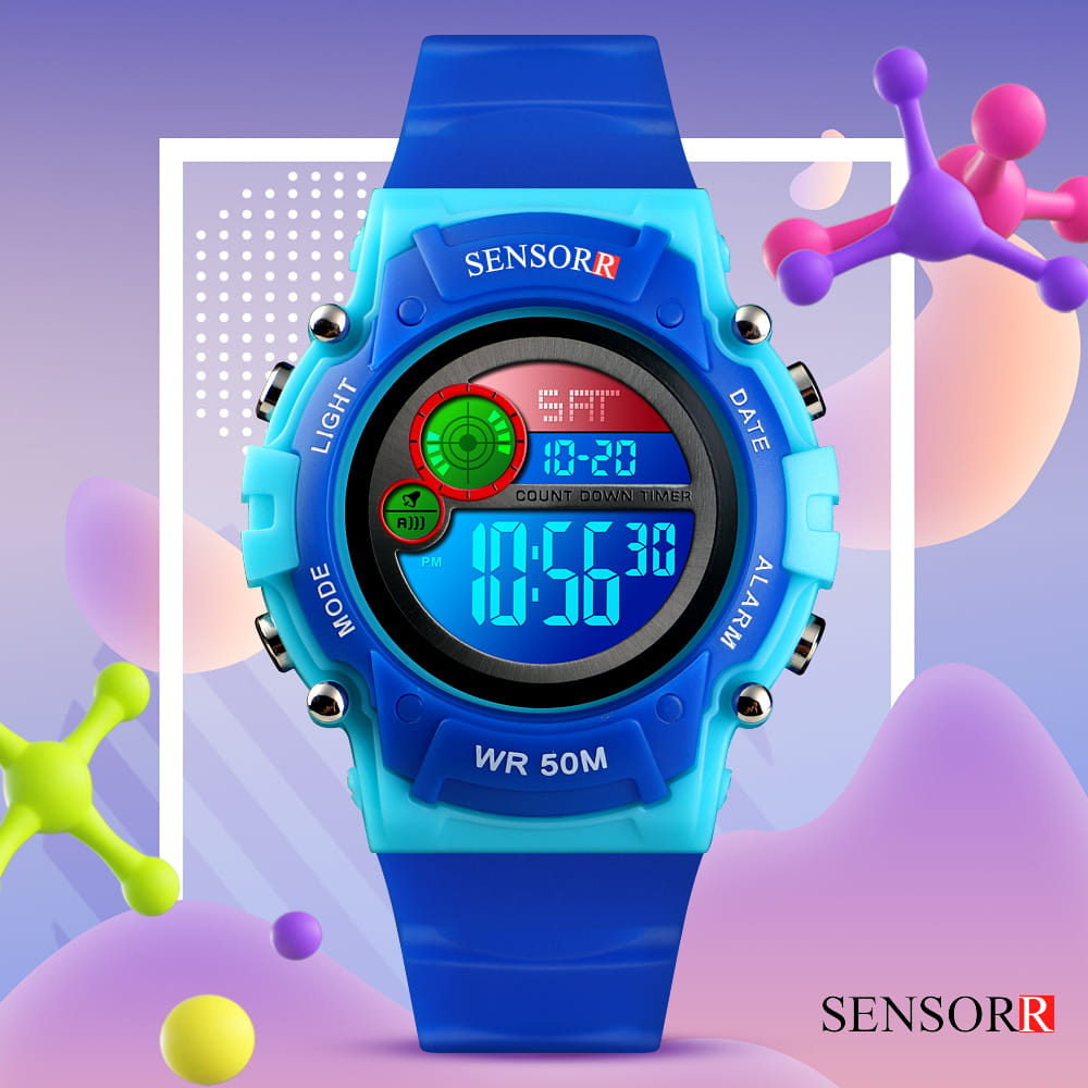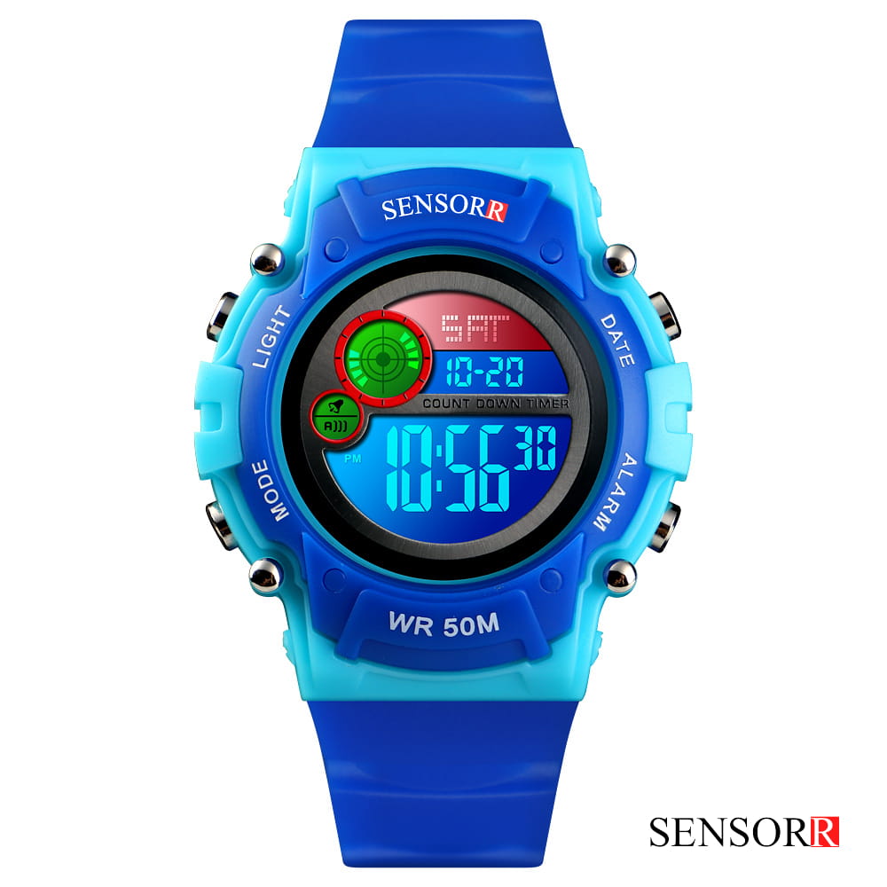 SPORTOWY ZEGAREK DZIECIĘCY DLA CHŁOPCA DLA DZIEWCZYNKI KOLOROWE PODŚWIETLENIE LED SENSORR