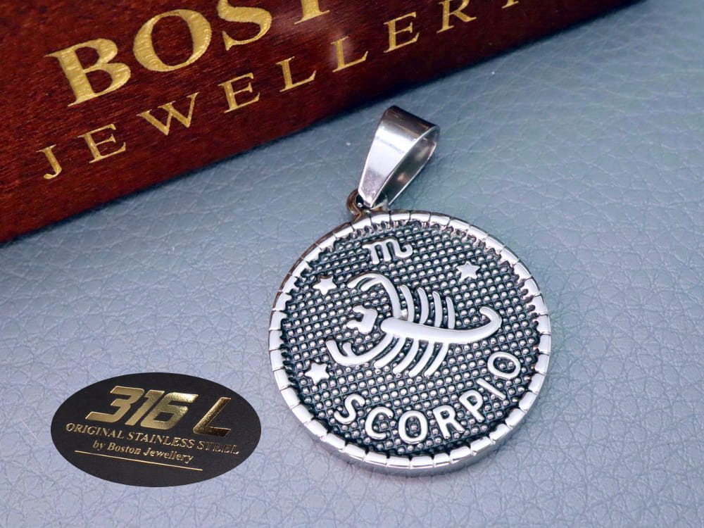 Srebrny Medalik Medalion ZNAK ZODIAKU SKORPION Stal Chirurgiczna 316L Boston Jewellery
