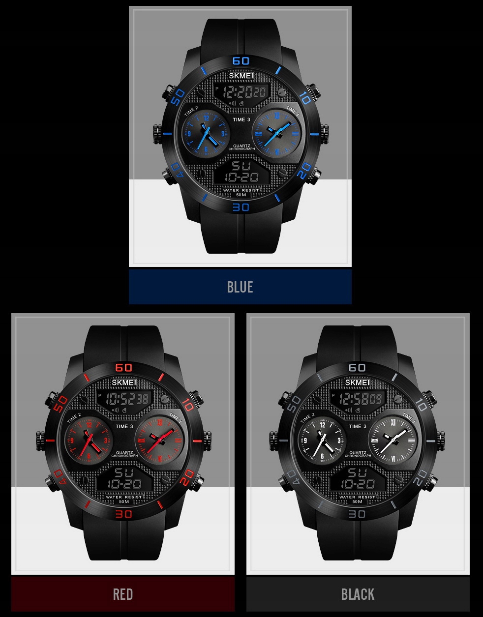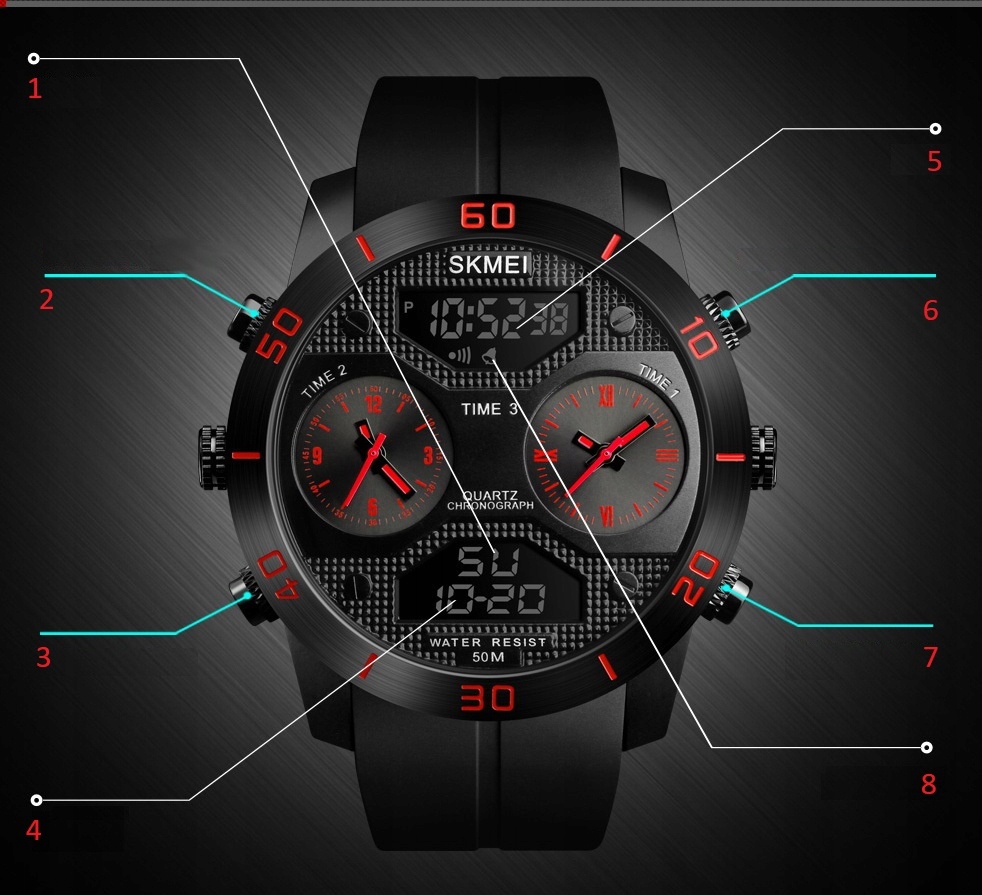 SKMEI to jeden z największych koncernów produkujących szeroką gamę zegarków w zaawansowanych technologicznie fabrykach w oparciu o innowacyjne rozwiązania oraz najnowsze zdobycze naukowe. Produkty te charakteryzuje niesłychana wręcz precyzja wykonania - każdy pojedynczy element to prawdziwe arcydzieło !!! Spasowanie elementów oraz wykończenie są bardzo solidne, a całość wygląda imponująco!