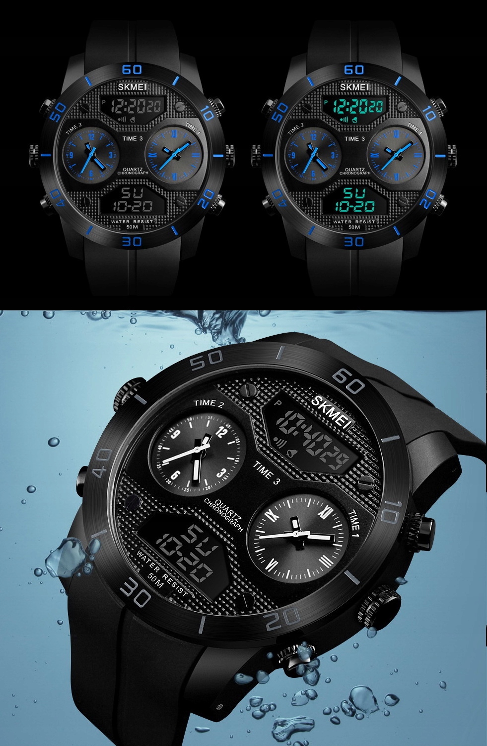 ZEGAREK MĘSKI SKMEI EKSKLUZYWNY MODEL 3 CZASY !!!